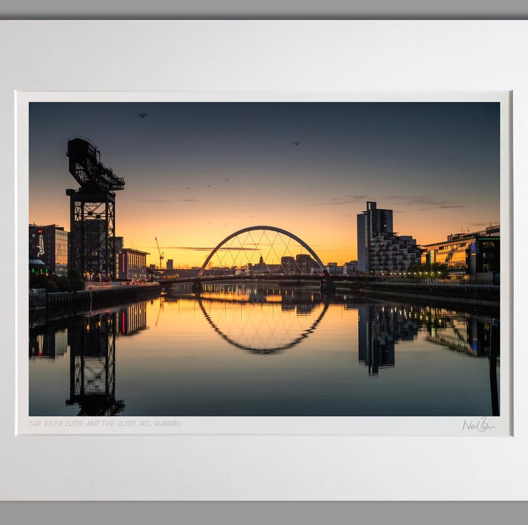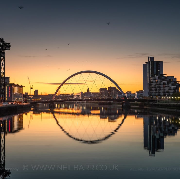 Image: "Dawn over the Clyde Arc" - The River Clyde and the Clyde Arc, Glasgow at dawn, 21 October 2019 - by Scotland photographer Neil Barr
