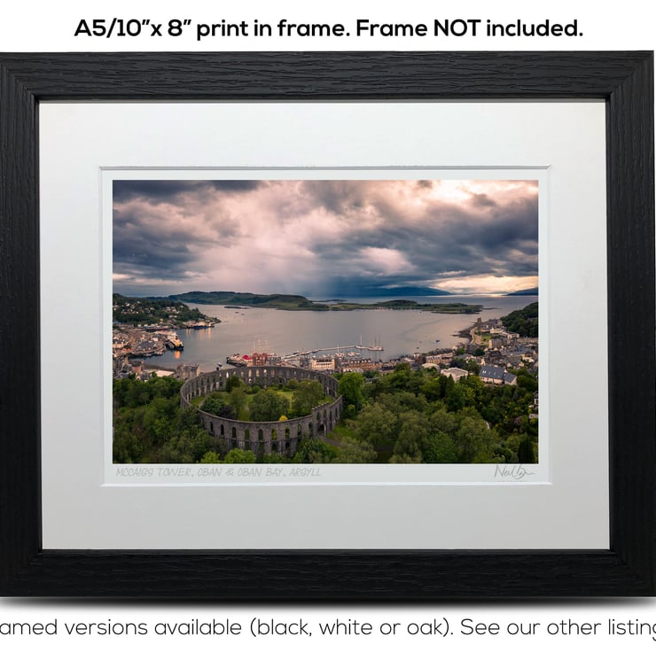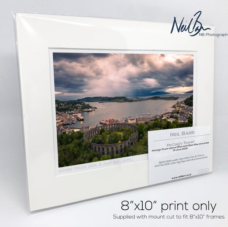 Supplied already mounted, wrapped & with signed labels & certificate, the image is printed on A5 size fine art paper (148x210mm). The actual image size is smaller (see listing images for sizes - image approx. 185x123mm) to allow for the signature & inscription. The 100% acid-free mount is cut to fit standard ready-made frames from high street stores. EXTERNAL mount size is 10"x8". This is the OUTSIDE size of the mount (and thus the size your frame should be).
