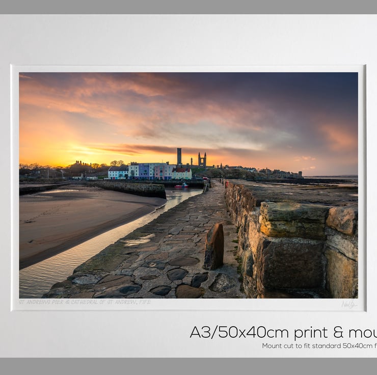 Image: "St Andrews" - St Andrews Pier and Cathedral of St Andrew at sunset, 20 February 2020 - by Scotland photographer Neil Barr