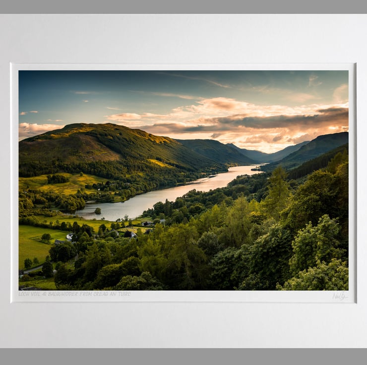Image: "Loch Voil" - Loch Voil, Loch Doine and Balquhidder from Creag an Tuirc, 25 July 2015 - by Scotland photographer Neil Barr