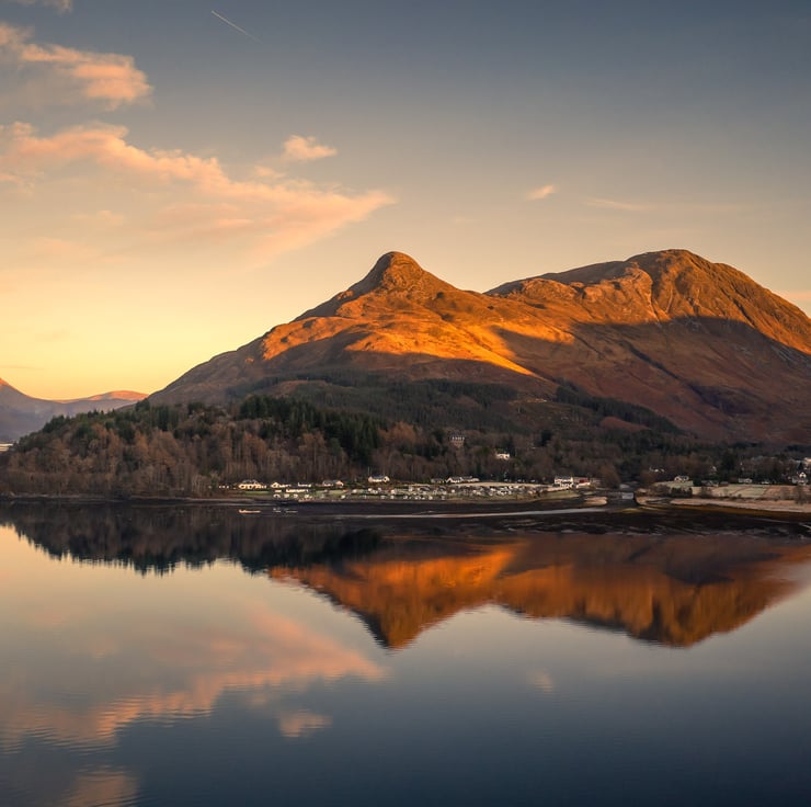 Image: "Sgorr na Ciche" - The Pap of Glencoe and the Aonach Eagach Ridge reflected in Loch Leven at dusk, 31 December 2019 - by Scotland photographer Neil Barr