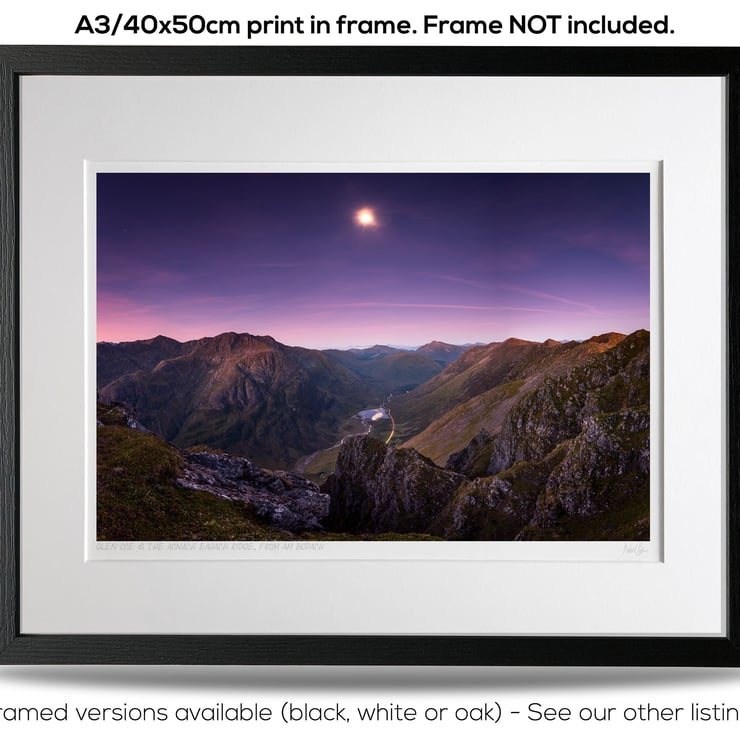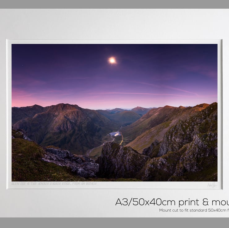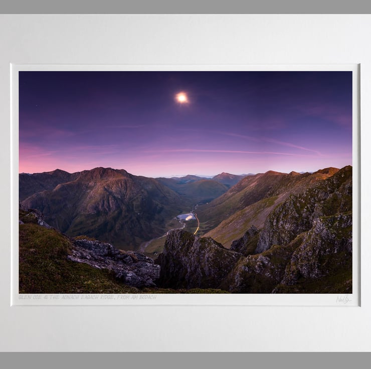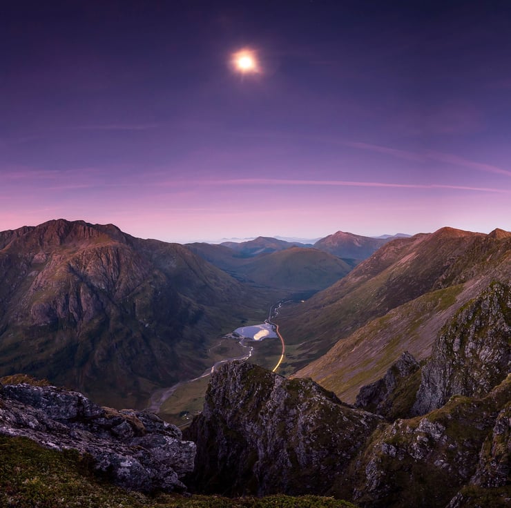 Image: "Moon over Glen Coe" - Moon setting over Glen Coe and the Aonach Eagach ridge, from Am Bodach, 30 September 2015 - by Scotland photographer Neil Barr