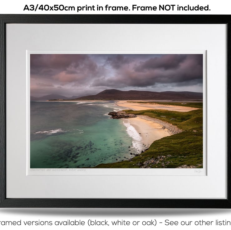 See menu (Shop collections) for different sizes & framed/unframed options. Images are organised by size & unframed or framed. Images are available in all sizes (except panoramas) from A6 to A2. See menu (Shop collections) for different options. Frames are available for delivery up to the A3 size paper in Black, White or Oak.