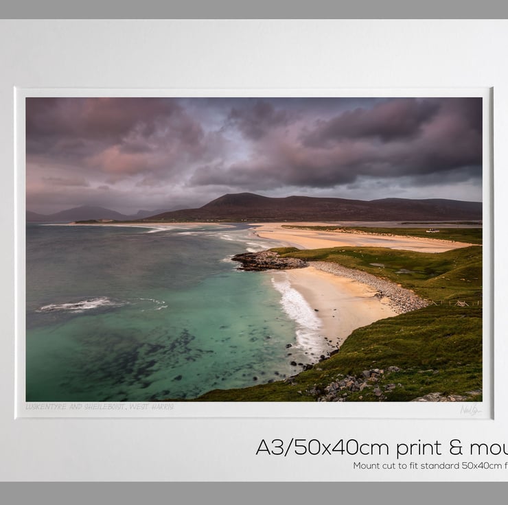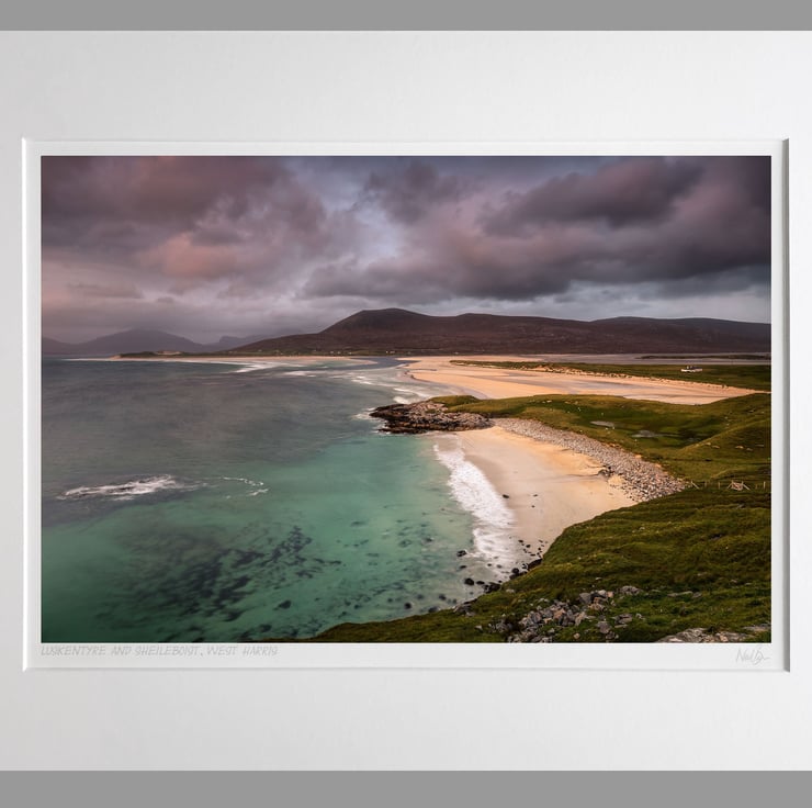 Image: "West Harris" - Classic view of the beaches of Luskentyre and Sheileboist on West Harris at sunset, 29 September 2017 - by Scotland photographer Neil Barr