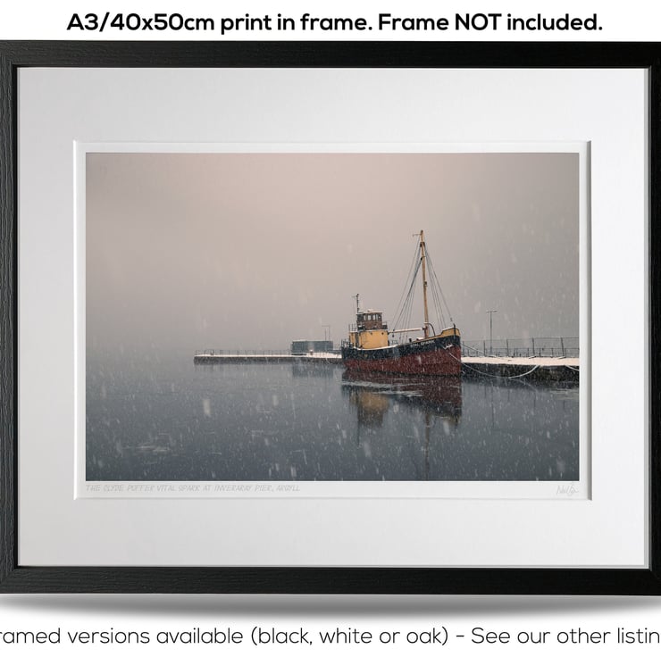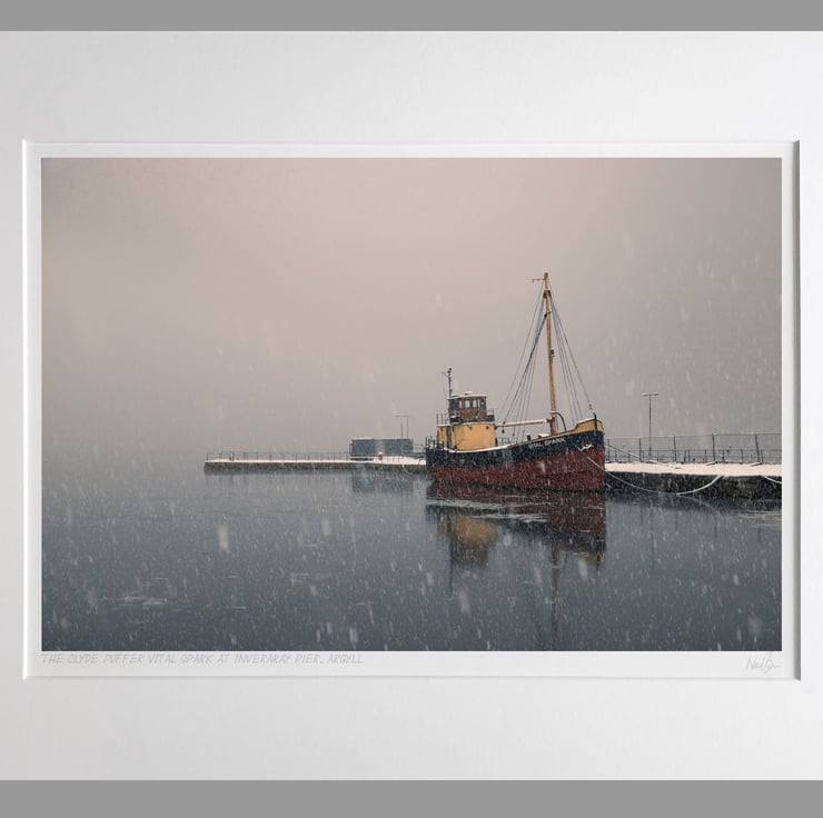 Image: "Vital Spark" - The Clyde puffer Vital Spark at Inveraray pier on a snowy day, 23 January 2019 - by Scotland photographer Neil Barr