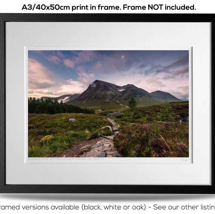 Printed on A3 size fine art paper (297x420 mm). The actual image size is smaller to allow for signature & inscription.