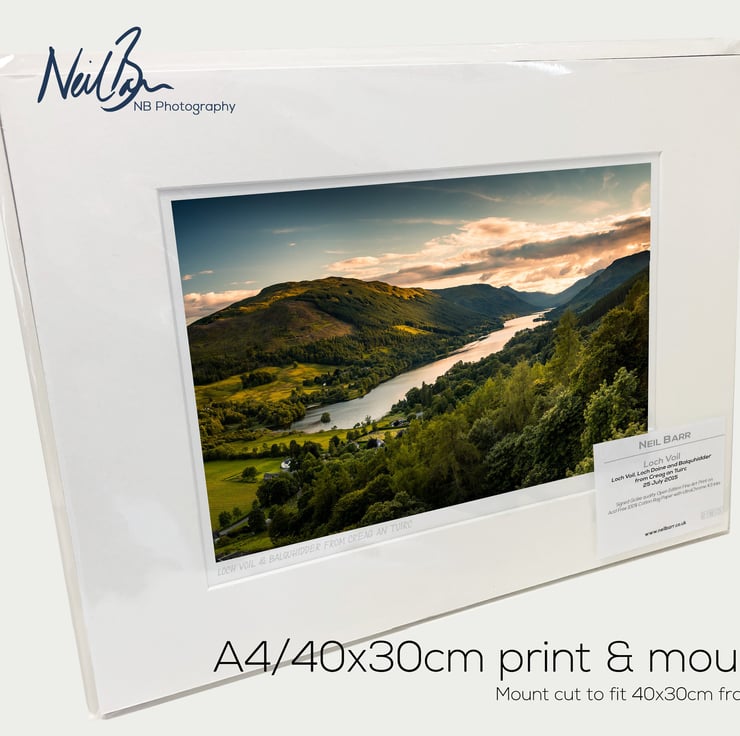 Supplied already mounted, wrapped & with signed labels & certificate, the image is printed on A4 size fine art paper (210x297mm). The actual image size is smaller (see listing images for sizes - image approx. 268x179mm) to allow for the signature & inscription. The 100% acid-free mount is cut to fit standard ready-made frames from high street stores. EXTERNAL mount size is 40cm x 30cm. This is the OUTSIDE size of the mount (and thus the size your frame should be).