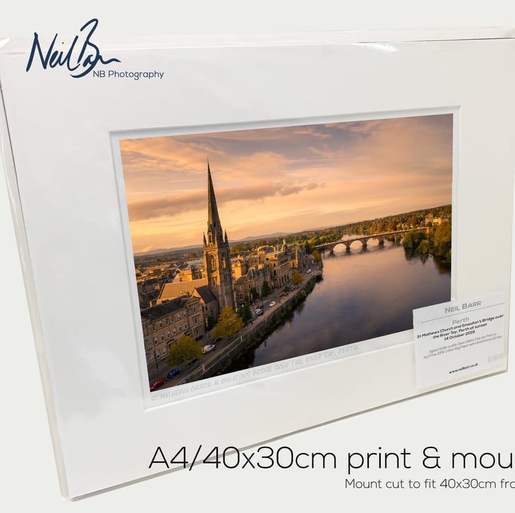 Supplied already mounted, wrapped & with signed labels & certificate, the image is printed on A4 size fine art paper (210x297mm). The actual image size is smaller (see listing images for sizes - image approx. 268x179mm) to allow for the signature & inscription. The 100% acid-free mount is cut to fit standard ready-made frames from high street stores. EXTERNAL mount size is 40cm x 30cm. This is the OUTSIDE size of the mount (and thus the size your frame should be).