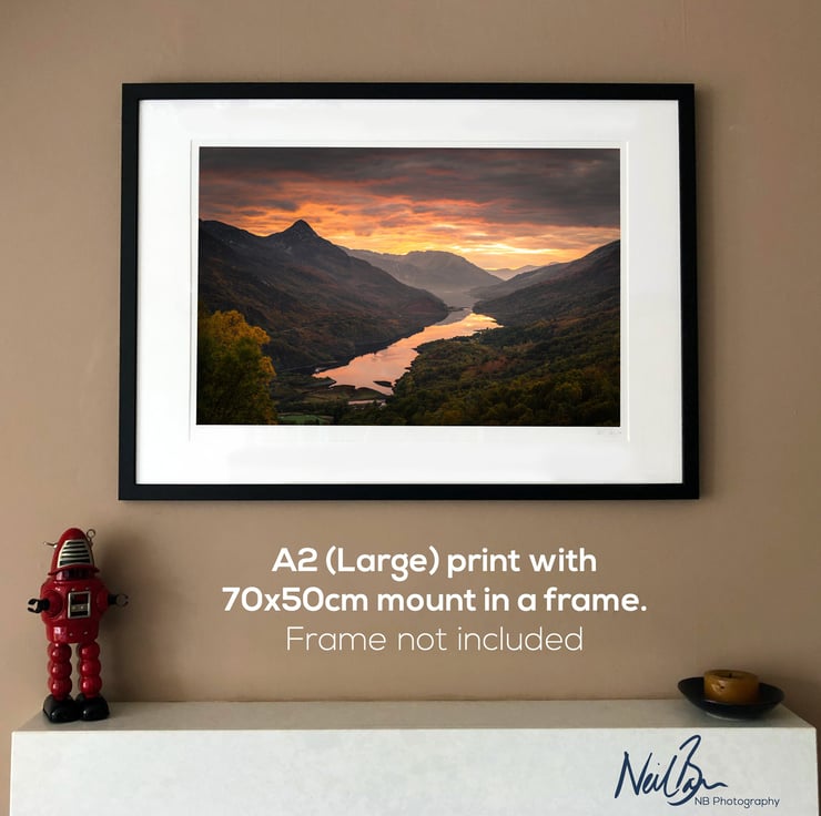 Supplied already mounted, wrapped & with signed labels & certificate, the image is printed on A2 size fine art paper (420x594mm). The actual image size is smaller (see listing images for sizes - image approx. 53x35cm) to allow for the signature & inscription. The 100% acid-free mount is cut to fit standard ready-made frames from high street stores. EXTERNAL mount size is 70cm x 50cm. This is the OUTSIDE size of the mount (and thus the size your frame should be).