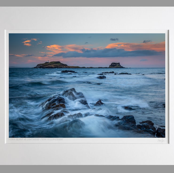 Image: "Fidra Lighthouse" - Lighthouse on Fidra Island from Yellowcraigs, 24 February 2015 - by Scotland photographer Neil Barr
