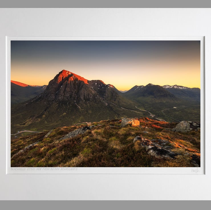 Image: "Buachaille Etive Mor" - Buachaille Etive Mor & Glen Coe at dusk from Beinn a'Chrulaiste, 10 June 2015 - by Scotland photographer Neil Barr