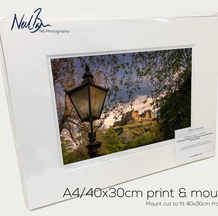 Supplied already mounted, wrapped & with signed labels & certificate, the image is printed on A4 size fine art paper (210x297mm). The actual image size is smaller (see listing images for sizes - image approx. 268x179mm) to allow for the signature & inscription. The 100% acid-free mount is cut to fit standard ready-made frames from high street stores. EXTERNAL mount size is 40cm x 30cm. This is the OUTSIDE size of the mount (and thus the size your frame should be).