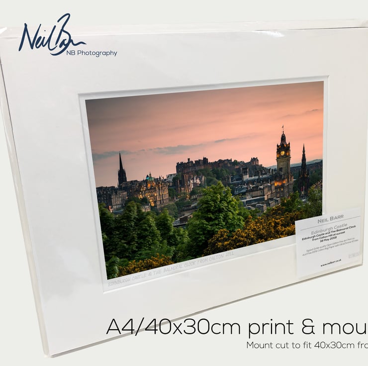 Supplied already mounted, wrapped & with signed labels & certificate, the image is printed on A4 size fine art paper (210x297mm). The actual image size is smaller (see listing images for sizes - image approx. 268x179mm) to allow for the signature & inscription. The 100% acid-free mount is cut to fit standard ready-made frames from high street stores. EXTERNAL mount size is 40cm x 30cm. This is the OUTSIDE size of the mount (and thus the size your frame should be).
