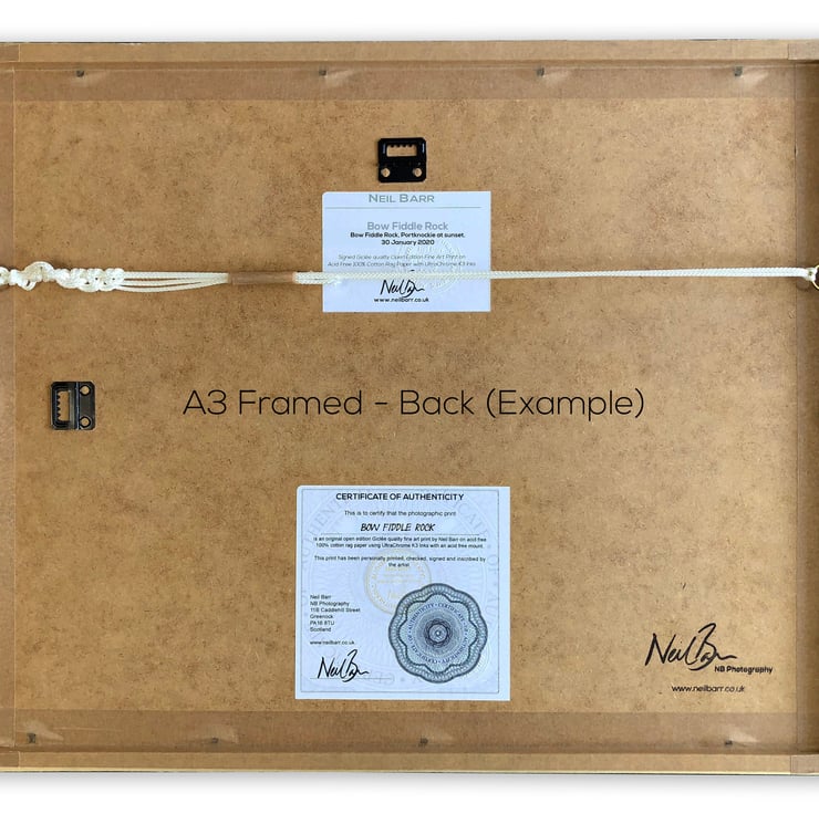 Supplied already mounted, framed, wrapped & with signed labels & certificate, the image is printed on A3 size fine art paper (420x297mm). The actual image size is smaller (see listing images for sizes - image approx. 389x259mm) allowing for the signature & inscription.