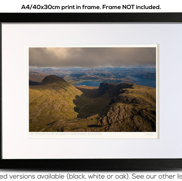 Supplied already mounted, wrapped & with signed labels & certificate, the image is printed on A4 size fine art paper (210x297mm). The actual image size is smaller (see listing images for sizes) to allow for the signature & inscription. The 100% acid-free mount is cut to fit standard ready-made frames from high street stores. EXTERNAL mount size is 40cm x 30cm. This is the OUTSIDE size of the mount (and thus the size your frame should be).