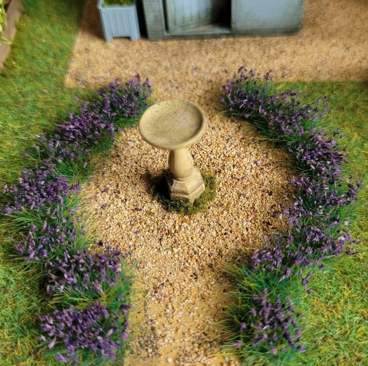 These tufts can be used in 1/12th scale and 1/24th scale try them around plants and in pots and cut into small pieces along the base of the house or in between paving.