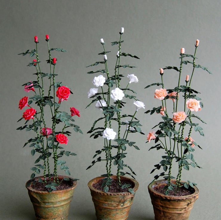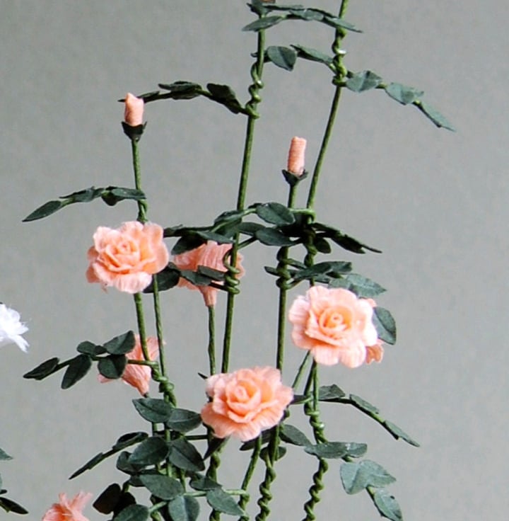 A 1/12th or 1" scale paper flower kit to make a Shrub Rose for your indoor miniature garden. You have a choice of colours, Red/Pink, Peach/Pink or plain White. Pot not included.