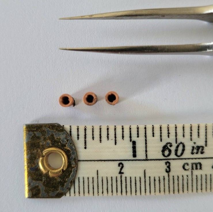 They measure approximately 5/32" or 4mm tall and 1/8" or 3mm wide at the top.