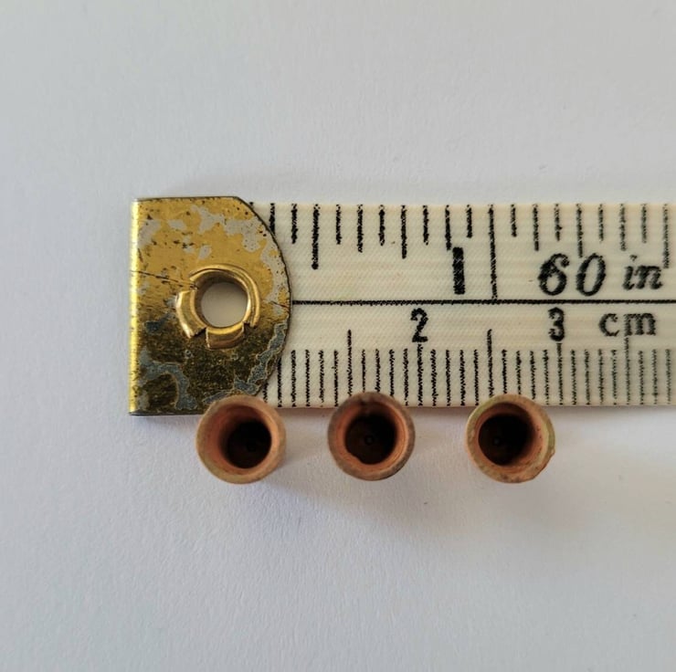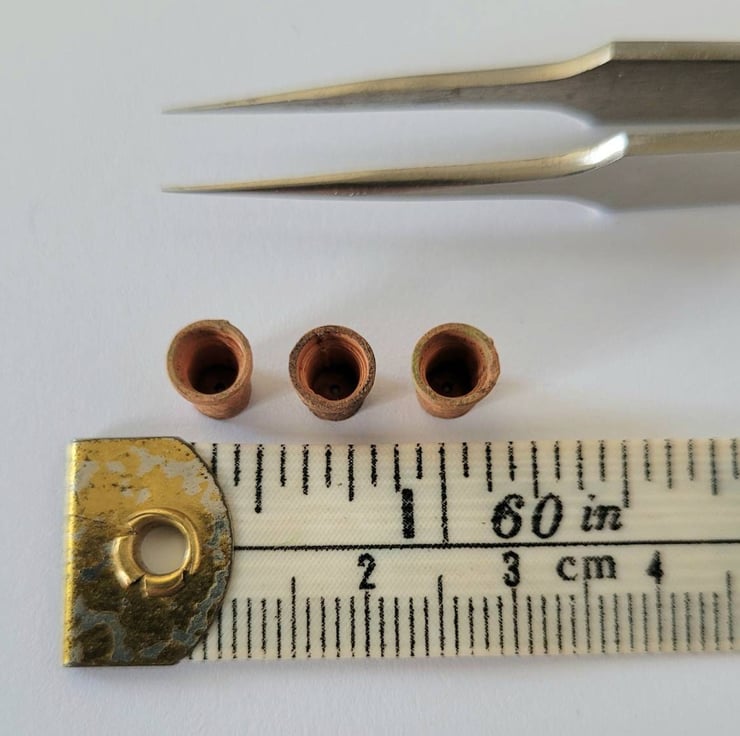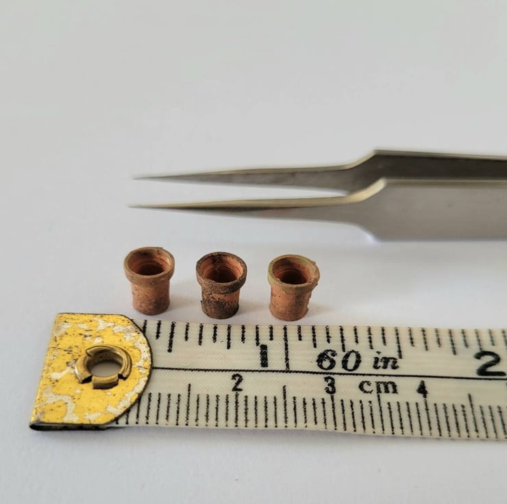 They measure approximately 1/4" or 6mm tall and 1/4" or 6mm wide at the top.
