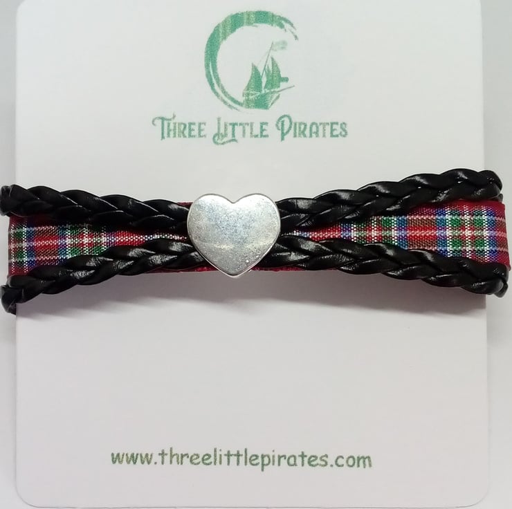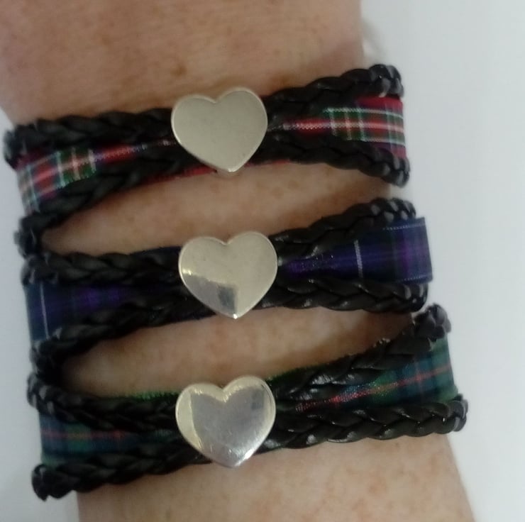 Scottish cuff bracelet in a choice of tartans with heart detail.