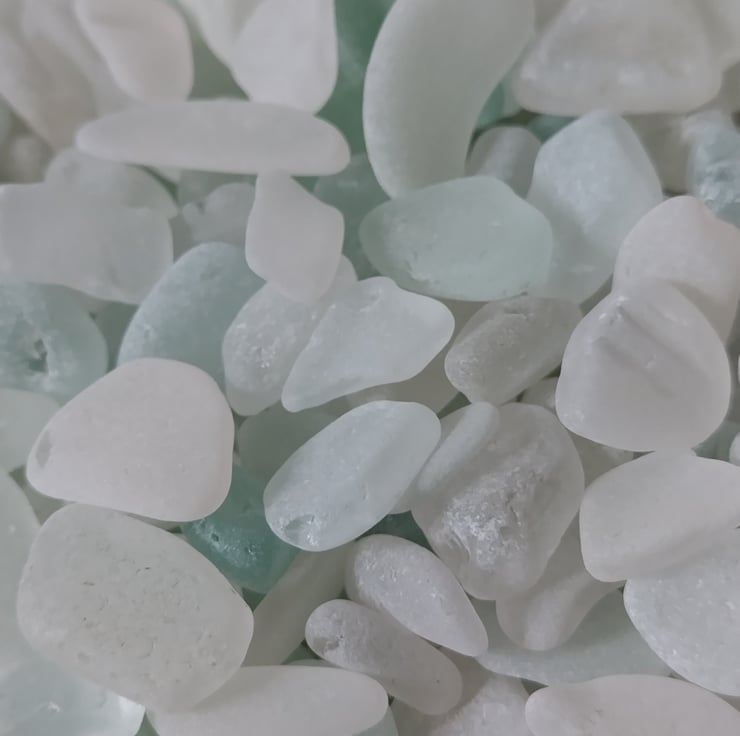 Seaglass is glass that has been discarded in the sea. Over time it is broken and washed smooth by the waves, creating tiny colourful glass nuggets in the sand.