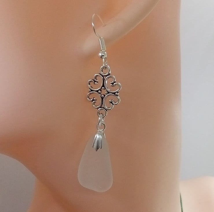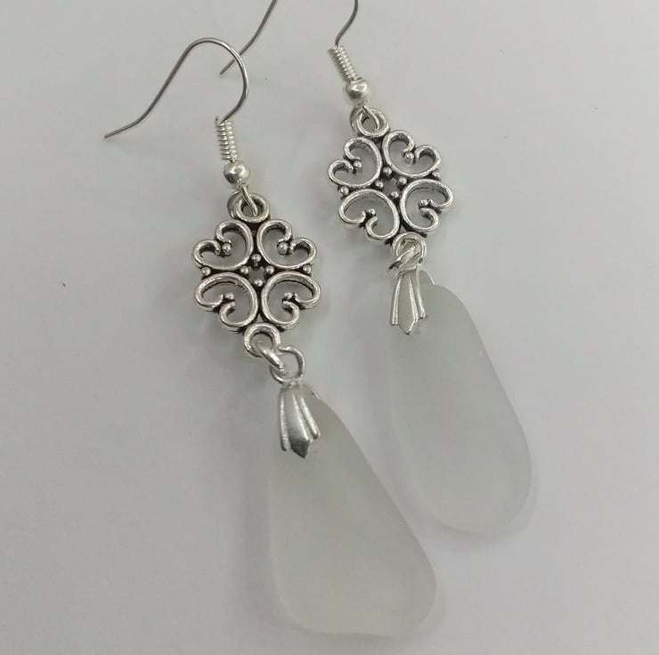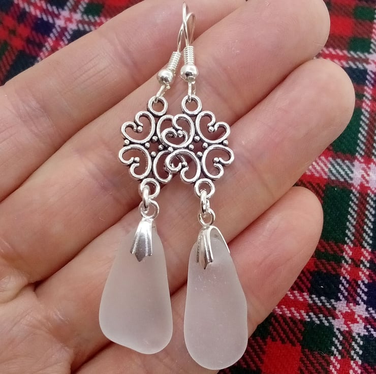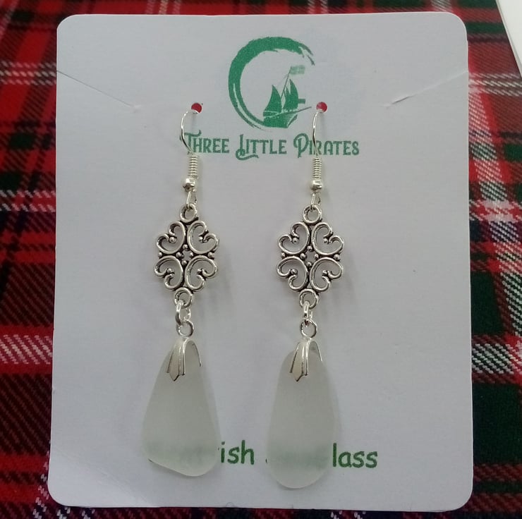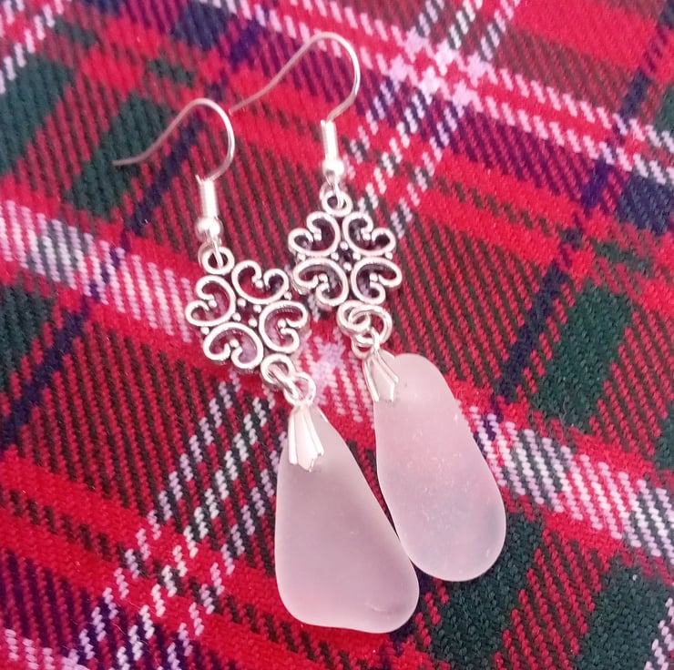 Dangly earrings made from sea glass found on our local beach in Scotland.