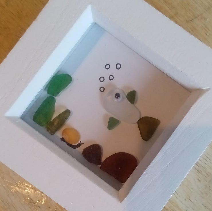Miniature framed Sea glass fish!