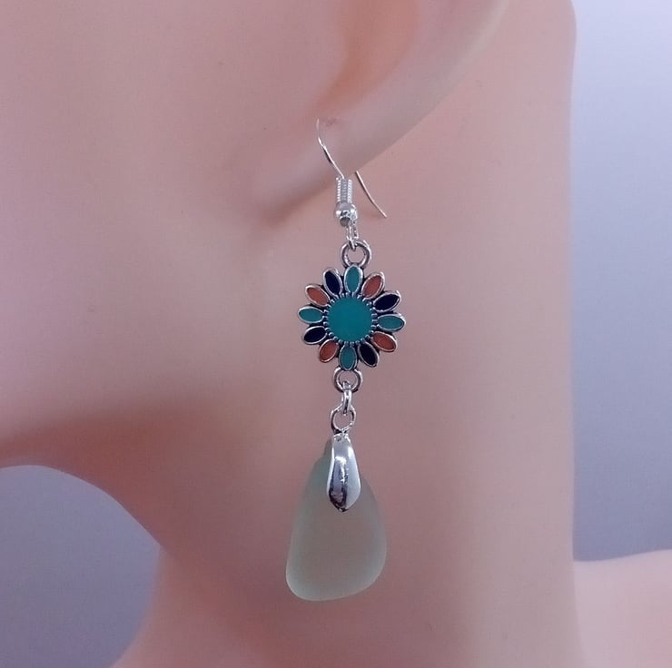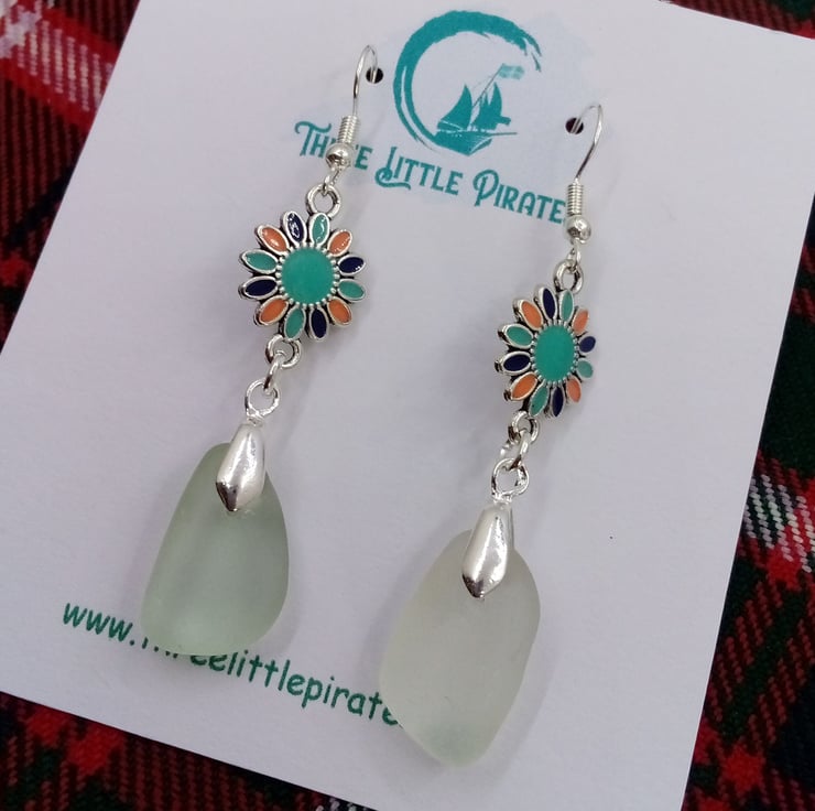 Long dangly earrings made from white seaglass found on our local beach in Scotland.
