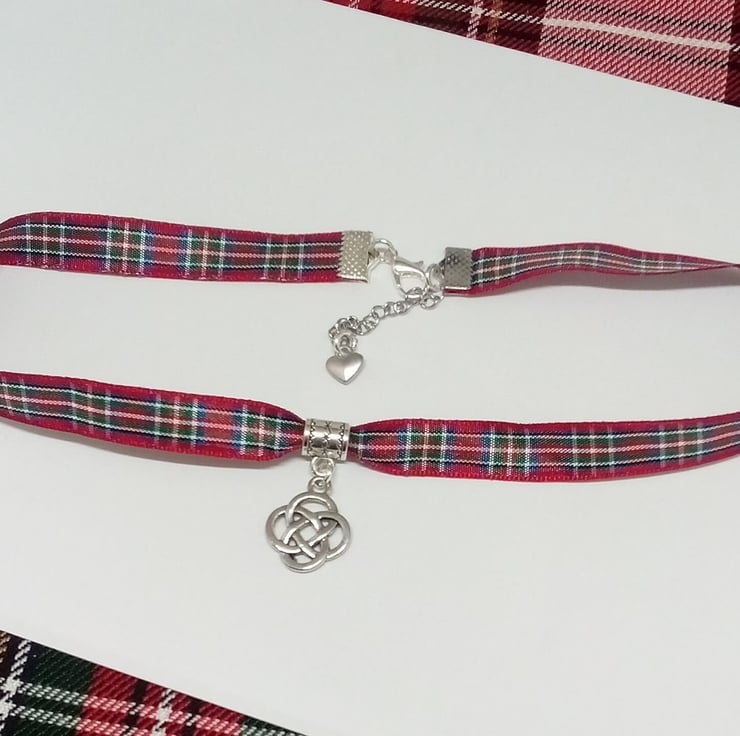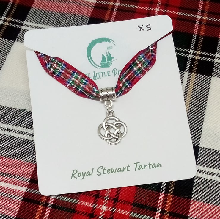 Scottish celtic knot necklace on your choice of tartan ribbon.