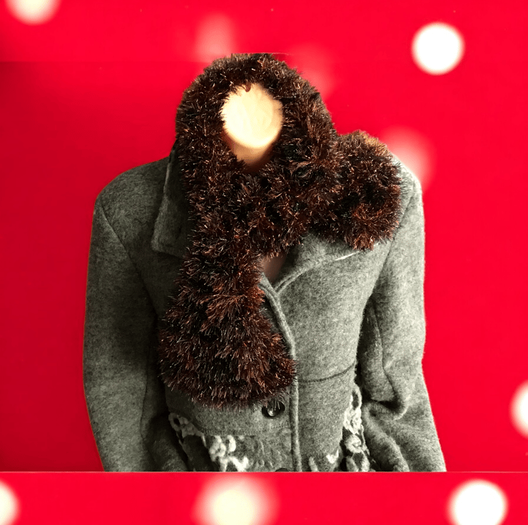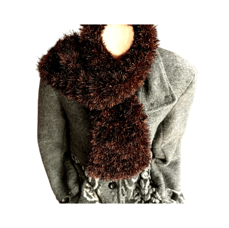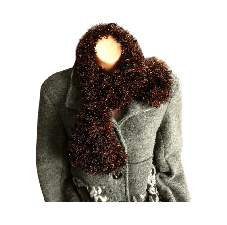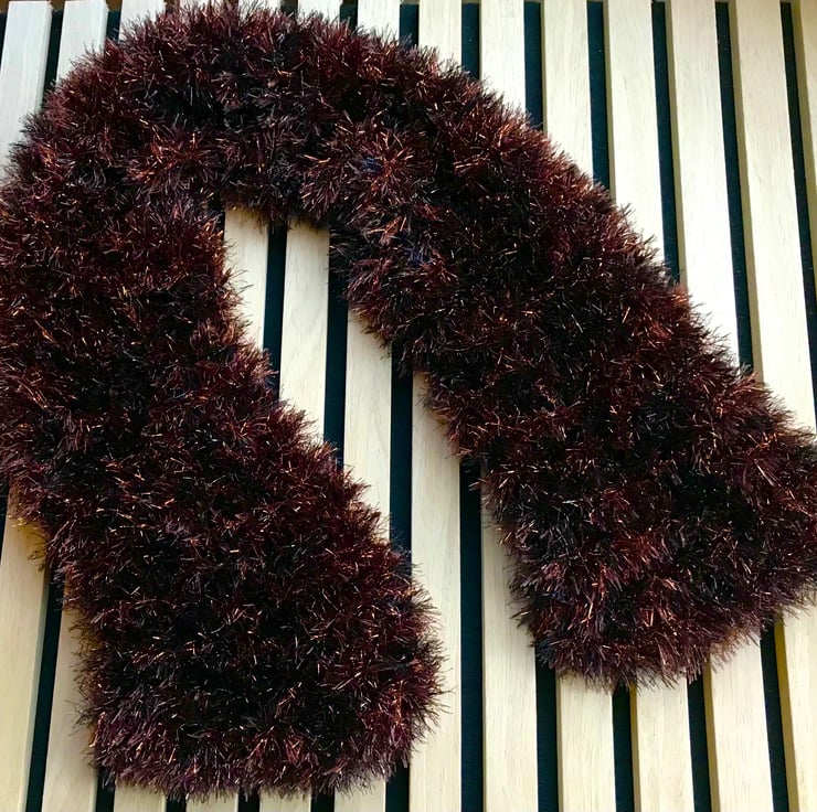 A gorgeous scarf made with BOTH black and rich copper coloured lovely tinsel effect to wrap yourself in warmth and sparkle this winter.