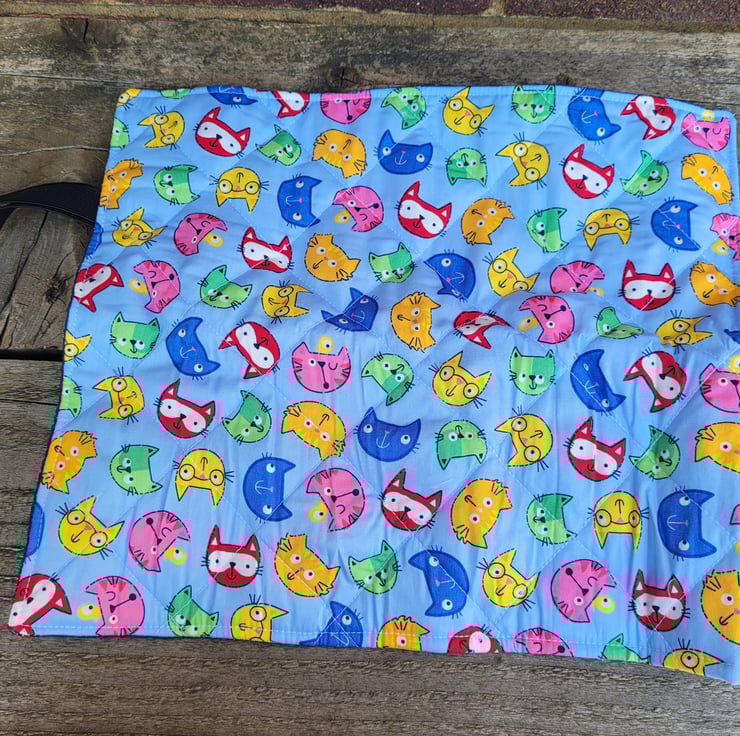 These handy lightweight quilted mats have an attractive cotton top, 2 layers of wadding for comfort and are backed with water-resistant fabric. Roll up and secure with the elastic loop. They're small enough to fit in your pocket or bag.