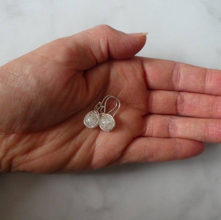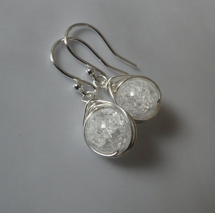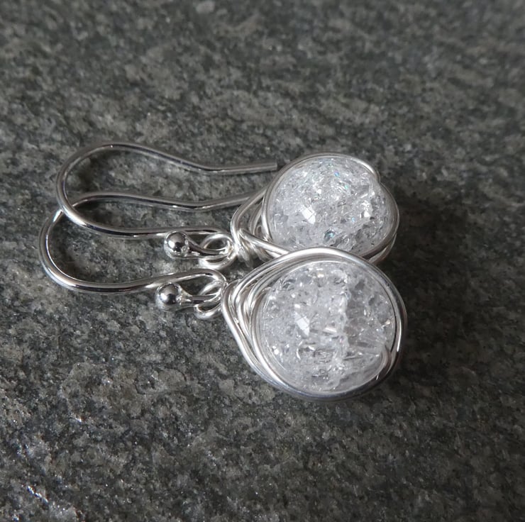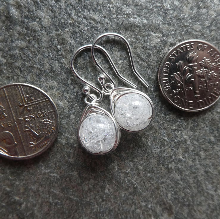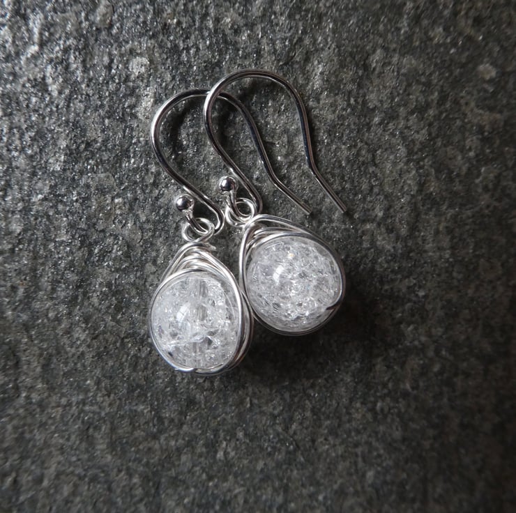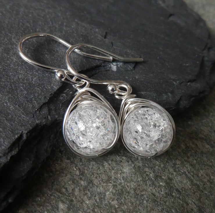 Clear quartz crystal is often used as an alternative to diamond for an April birthday and is an affordable but no less pretty option. These particular beads feature a crackle finish which means they have the appearance of fractured ice within the stone. Each bead is unique making your earrings extra special. Due to the unique nature of these beads and the intricacy of hand wrapping each pair I make is slightly different and there will be differences between the photos and your own unique pair. Crackle quartz is created by heating then rapidly cooling the stone, creating a fractured ice effect within.