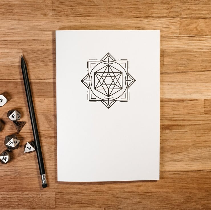 A handy A5 notepad to record your adventures! This pad has 48 lined pages and a stylised D20 symbol on the front cover. Purchase an Inventory class icon sticker separately to customise your notepad to match your character! A neat little gift for any D&D fan.