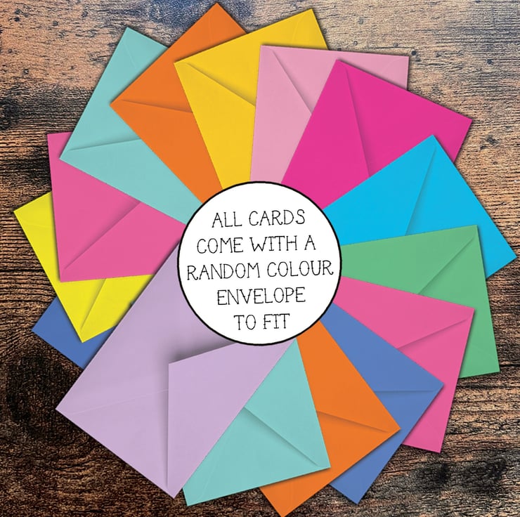 My cards are beautifully printed on heavywieght cardstock with a luxury matte finish and vibrant colours and come with a matching coloured envelope.