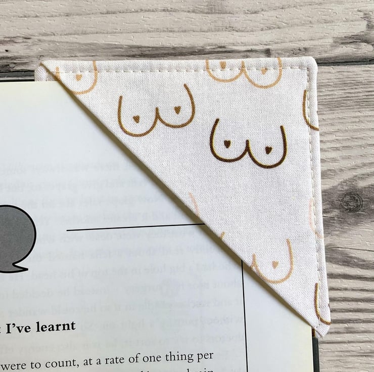 Fun booby print themed cotton fabric corner bookmark. Book lovers gift.