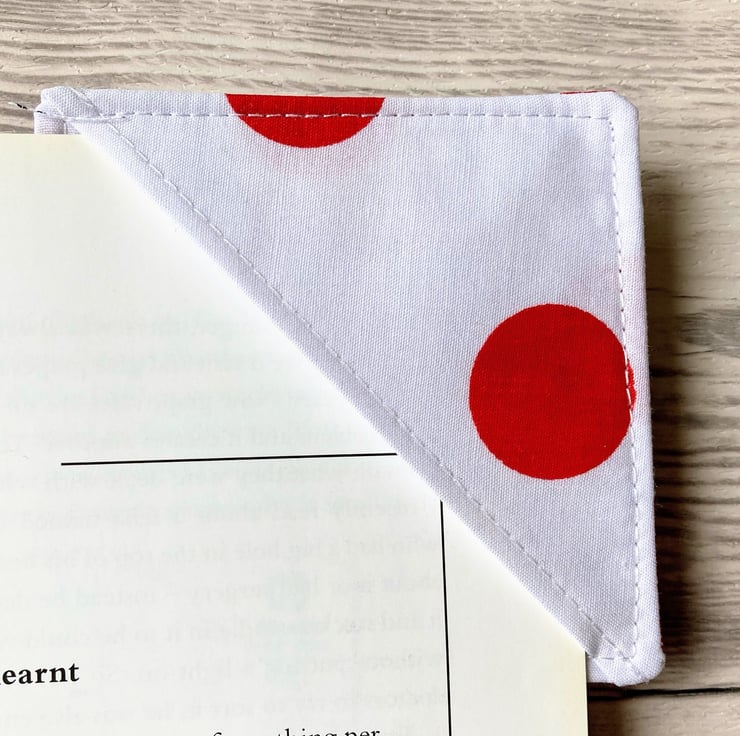 Fabric corner bookmark, layered with interfacing and topstitched.
