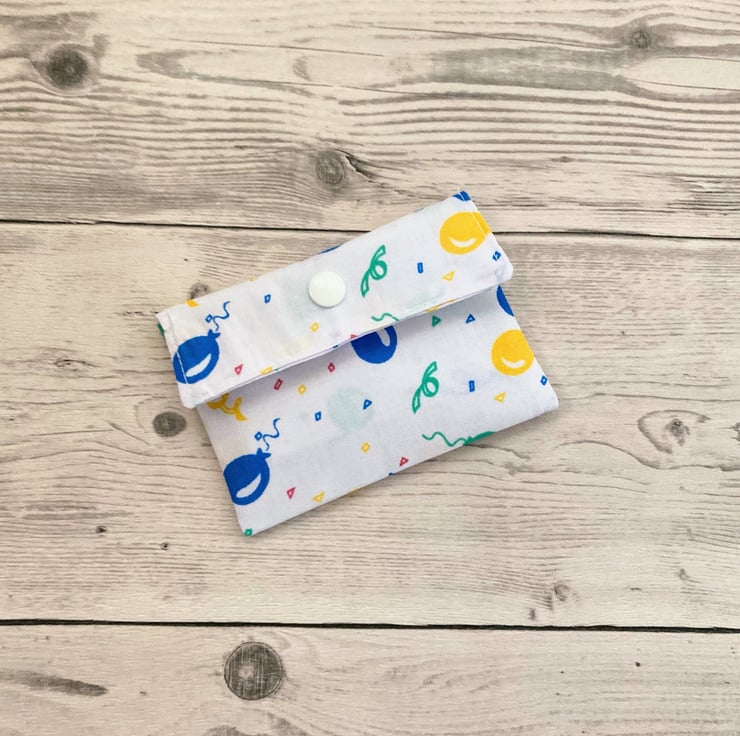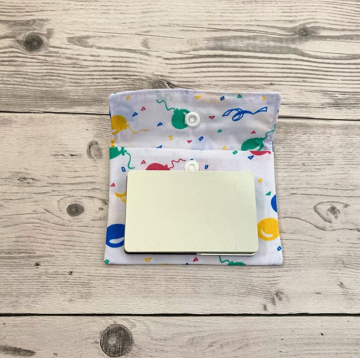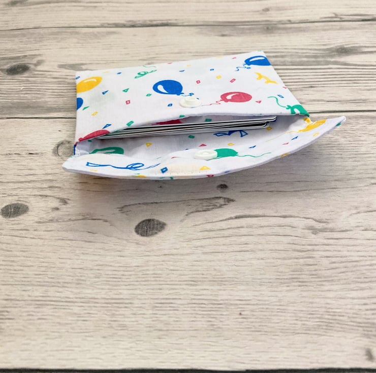 Balloon themed fabric card holder pouch. Loyalty, credit, debit cards purse.