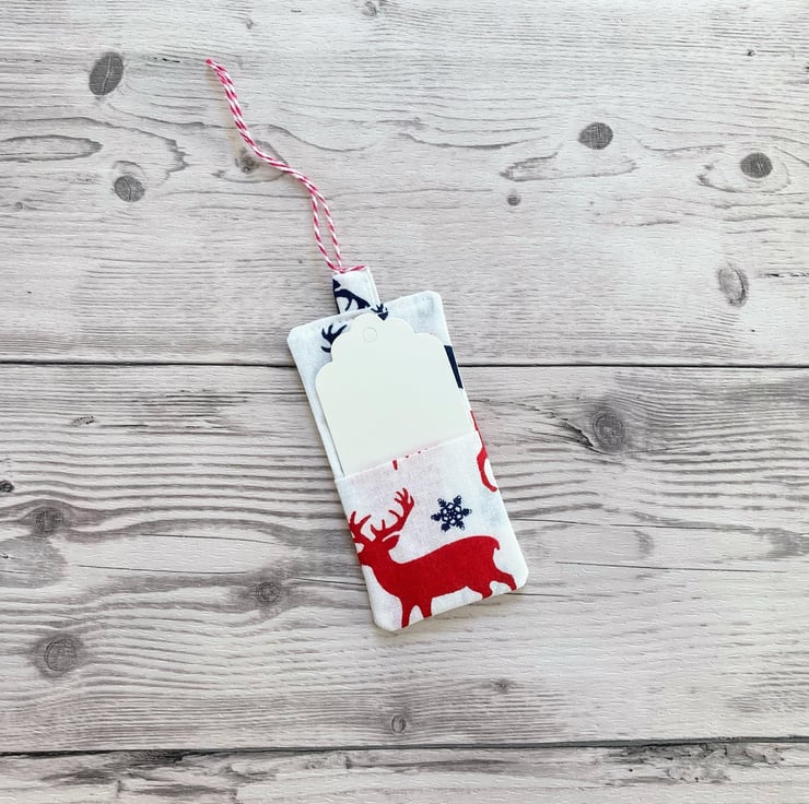 Christmas fabric gift tags. With twine and card. Eco friendly. Reusable. Cotton
