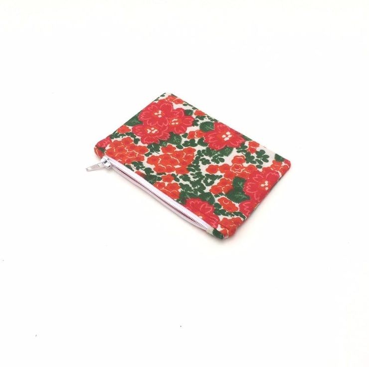 This small Cotton fabric zipped purse measures 12.5 x 9 cm