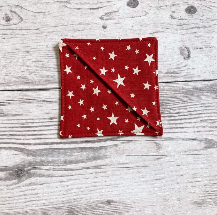 Red with white stars cotton fabric corner bookmark. Book lovers gift.