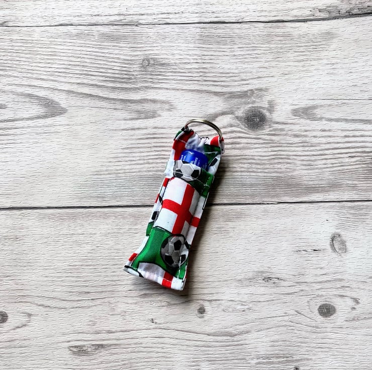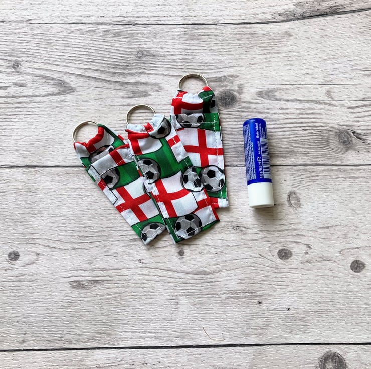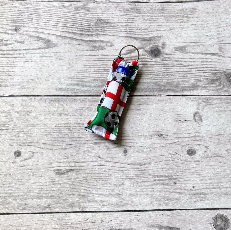 Football themed fun lip balm cotton fabric keyring. Keychain, Lipstick holder.