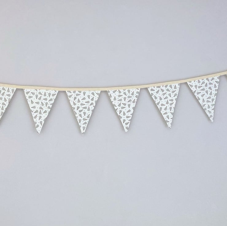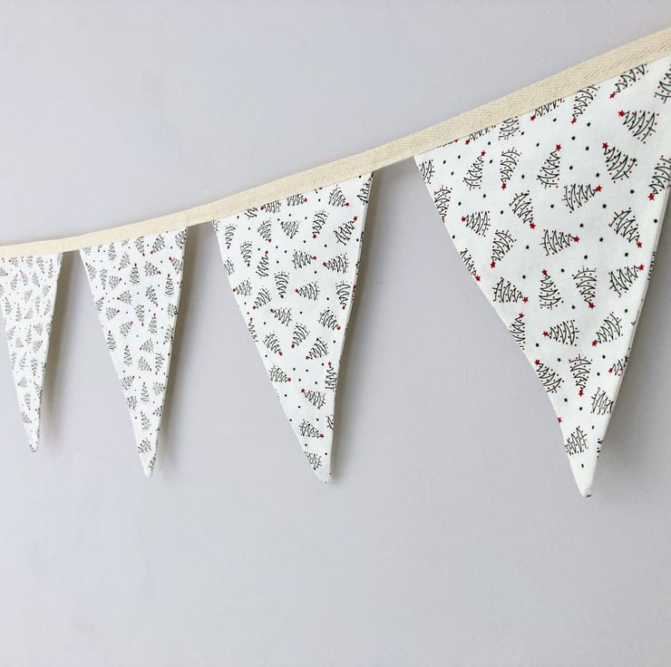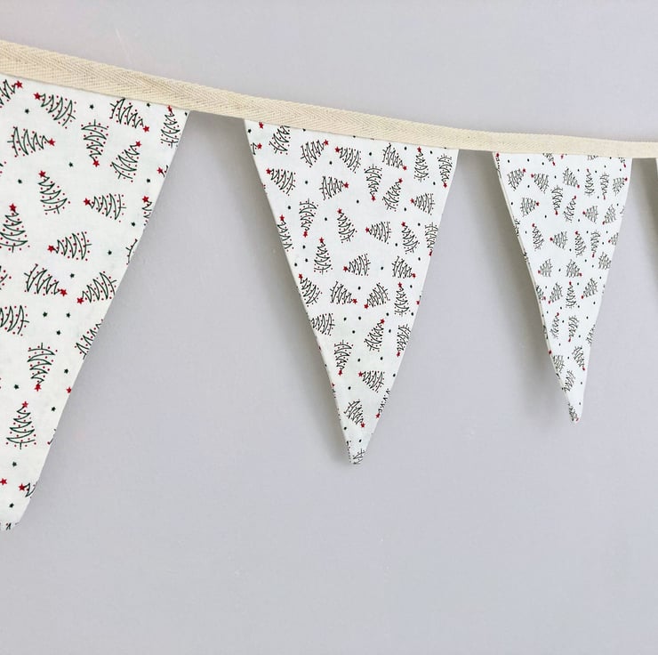 Christmas trees on cream cotton fabric double sided bunting.