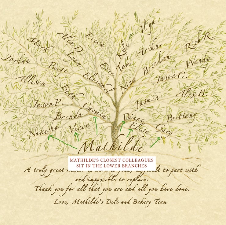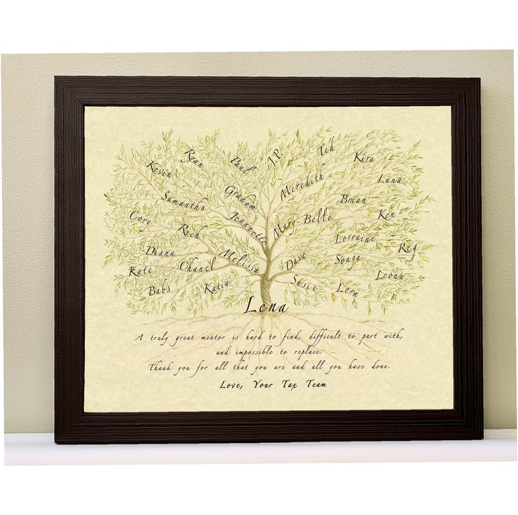 Fill the branches of this tree with names of colleagues to gift as a lasting memory for a treasured co worker, boss, mentor or teacher.