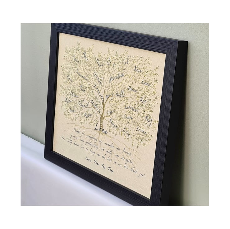 I originally offered this artwork as a family tree but then realised that it would make a unique gift for a colleague which could be filled with coworker names to create a truly unique piece of art to remember them by.