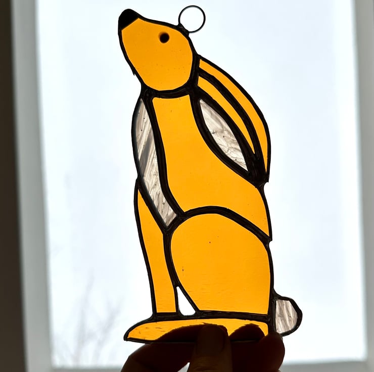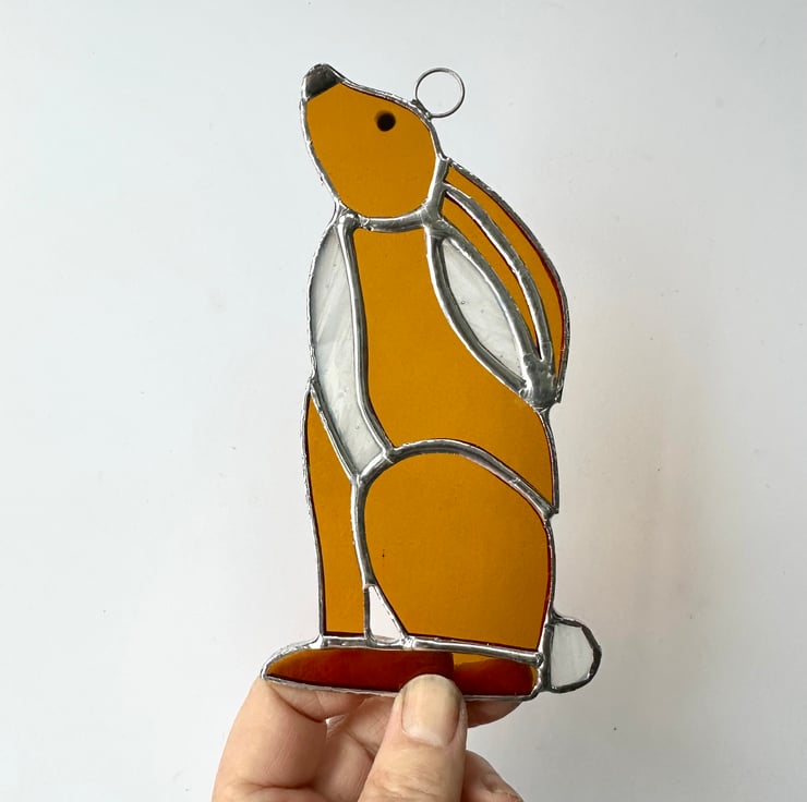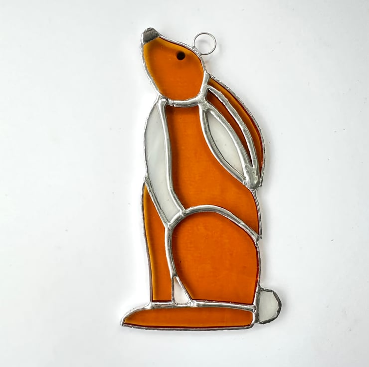 Hare suncatcher made in beautiful stained glass by Carole’s Glass.