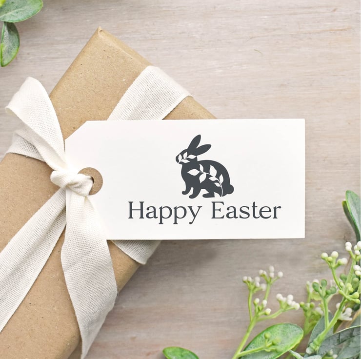 This Happy Easter stamp is a pretty design featuring a botanical bunny illustration and the words Happy Easter in a simple font. It is ideal for all kinds of Easter crafts such as cards, tags or for making gifts.
