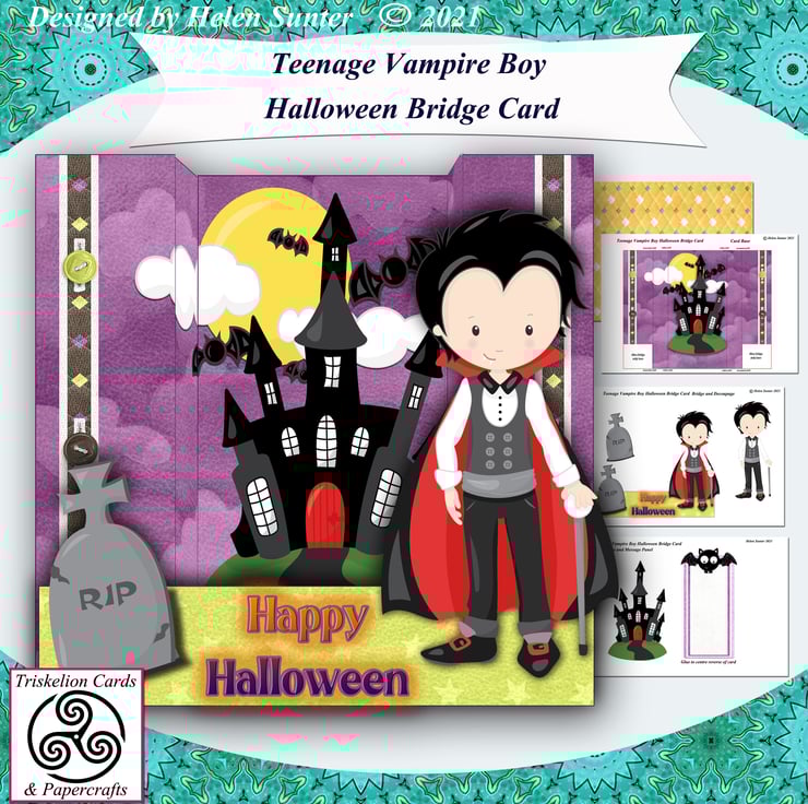 Cute teenage vampire boy card perfect for Halloween greetings.