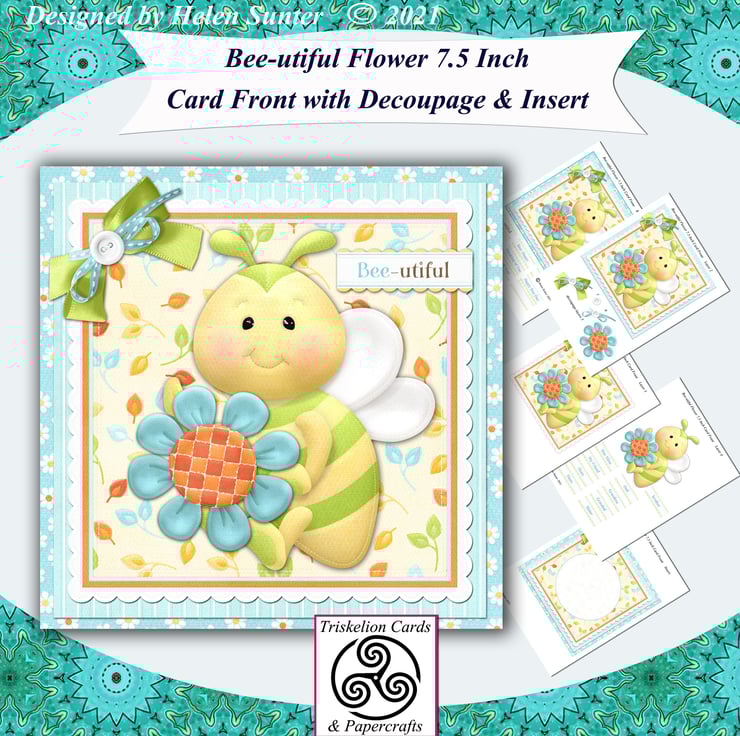 Make Your Own Bee - utiful 7.5 Inch Card Front with matching insert, extra sentiment tiles and optional decoupage.