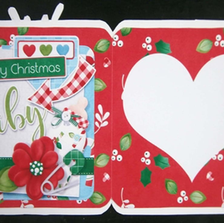 The wording on the front of this digital kit reads: 'Who needs mistletoe when you are this cute?' and on the bauble, 'Baby's 1st Christmas'. The insert is blank, but the graphic on the left hand side reads 'Merry Christmas' and 'baby'.