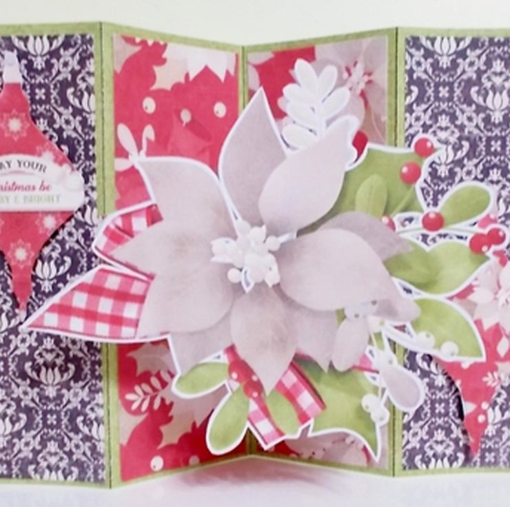 A five A4 sheet kit to make a beautiful gatefold reverse pop out Christmas card. The card comes with instructions and diagrams, but is very easy to make.